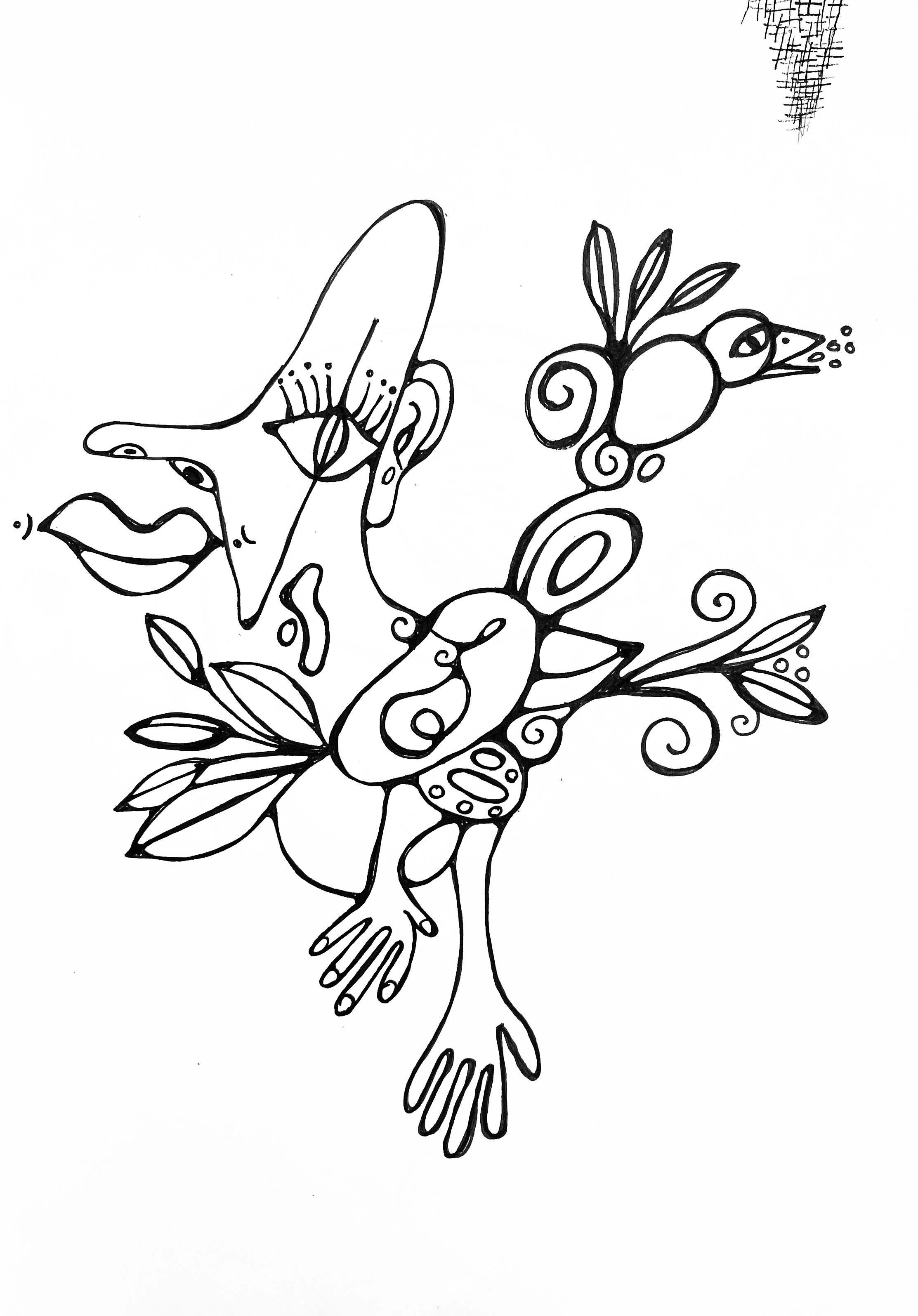 In NSPIRE, I’ll share one of my favorite creative practices with you: black-and-white intuitive drawing. All you need is a black fineliner (I love using 0.5 mm pigment liners) and a sheet of white paper. Regular letter-size copy paper works perfectly, but if you prefer, bring thicker paper in the size you love. Below, you’ll find some of my own black-and-white creations for inspiration.